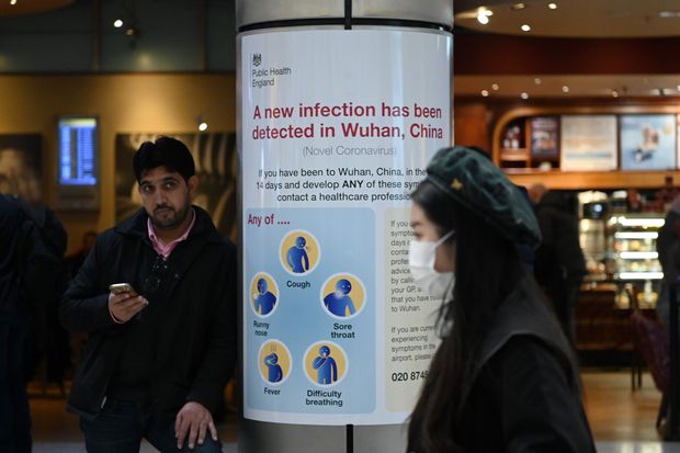 영국 공중 보건 사인이 런던 히드로 공항의 승객들에게 바이러스에 대해 경고합니다. 사진 : DANIEL LEAL-OLIVAS / AGENCE FRANCE-PRESSE / GETTY IMAGES