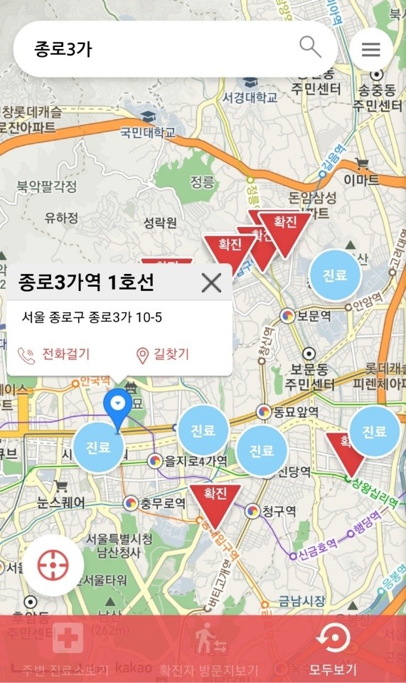 ‘내 위치’ 주변 확진자 방문 장소·진료 가능 의료기관 정보 제공