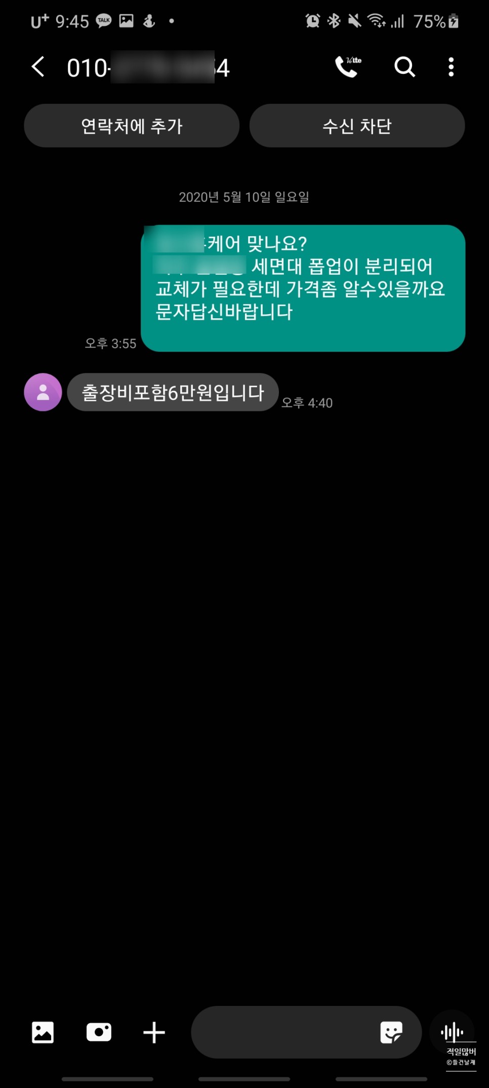 일요일이였고 문자 문의를 드렸지만 아무리 귀찮아도 서로 간의 예의는 지키자.