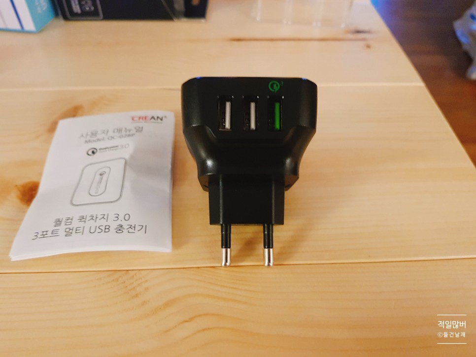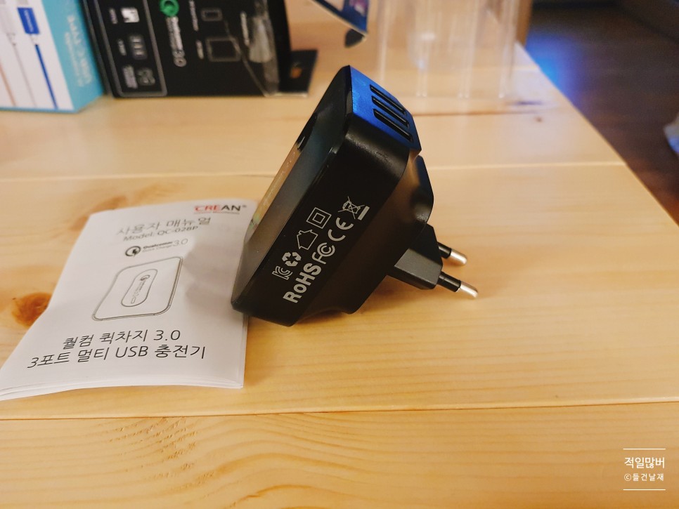 퀄컴 3.0 고속 충전 멀티 세 개의 USB 포트 지원이라고 써져있다.