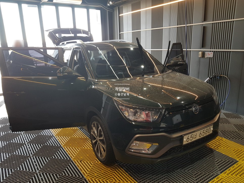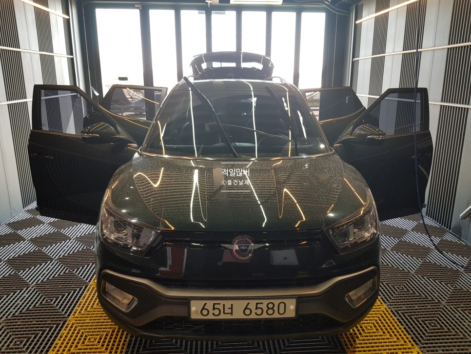 그리고 후반부 작업으로는 개인용 스텝스툴 혹은 비치된 스텝스툴 (발판)을 이용하여 차량 루프부분 밀어준다