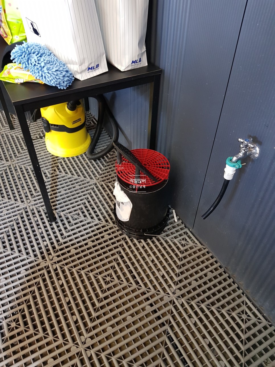 셀프 손세차를 안하는 사람도 다가가기 쉽게 버킷(물통) / 그릿가드* / 진공청소기 / 에어건 (노멀/토네이도) / 룸 스피커 잭 ETC .. 많은것이 한 차고지 안에 준비되어 있었다.