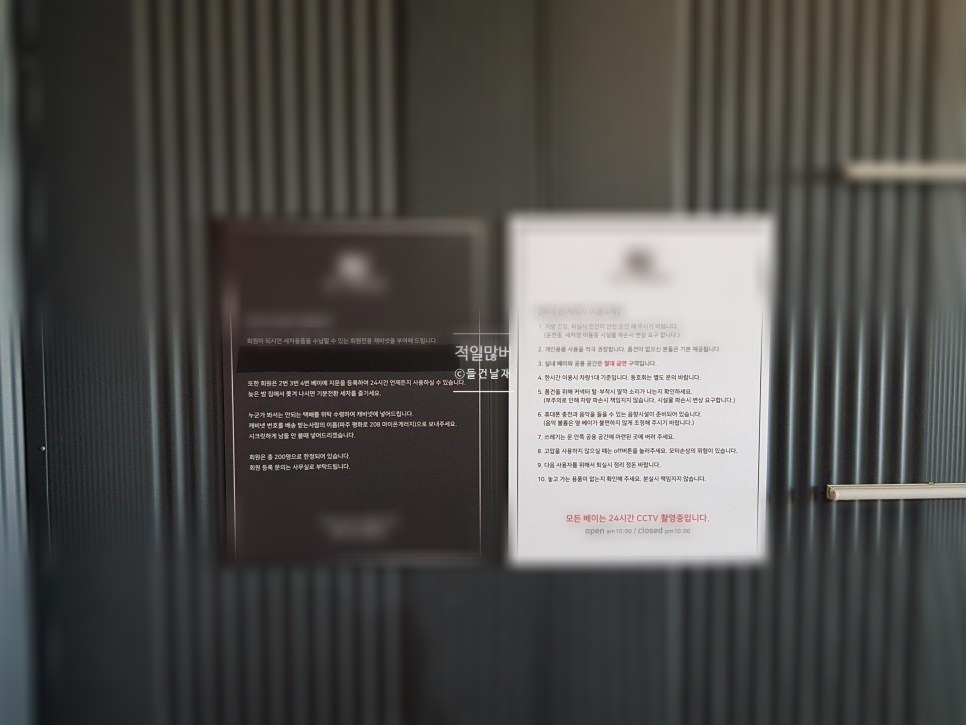 세차 준비하고 있는데 차고 마다 보안 및 안전용 CCTV가 있어서 사장님께서 흘깃 보시고 외부청소 시작 안한걸 아셨는지