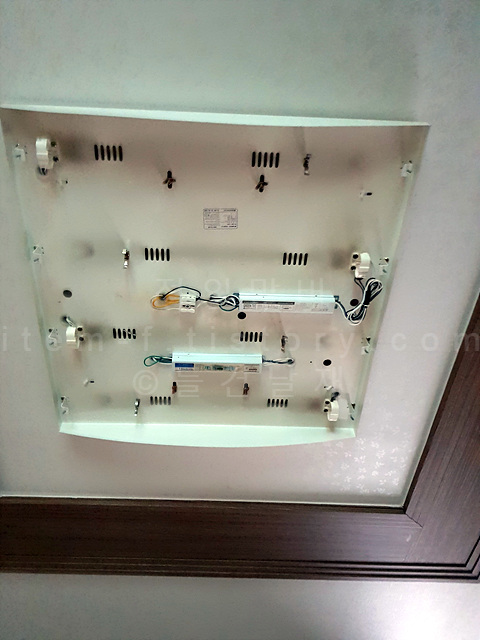 설치 시작할 때는 몰랐지만 내가 전선을 뽑고 등을 설치할 때 즈음 해가 다 떨어져서 핸드폰 플래시를 켜고 작업했다.