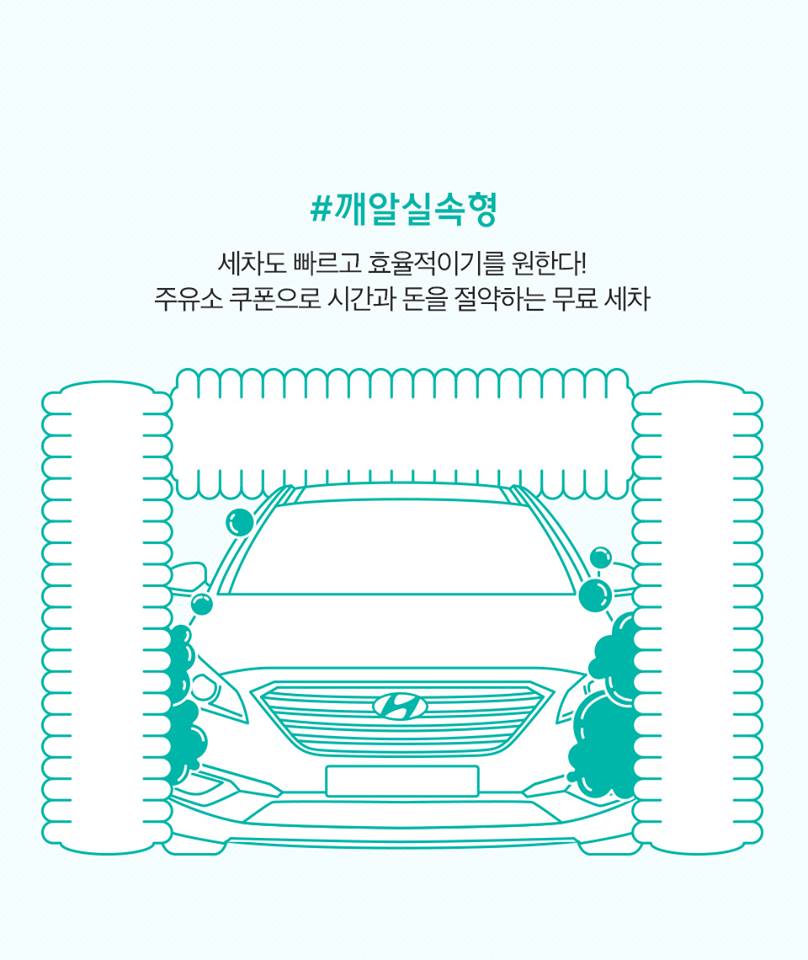 세 번째 세차 유형, 깨알실속형. 빠르고 효율적인 자동차 세차를 원하는 깨알실속형은 주유소 쿠폰으로 무료 세차를 이용해 시간과 돈을 절약합니다.